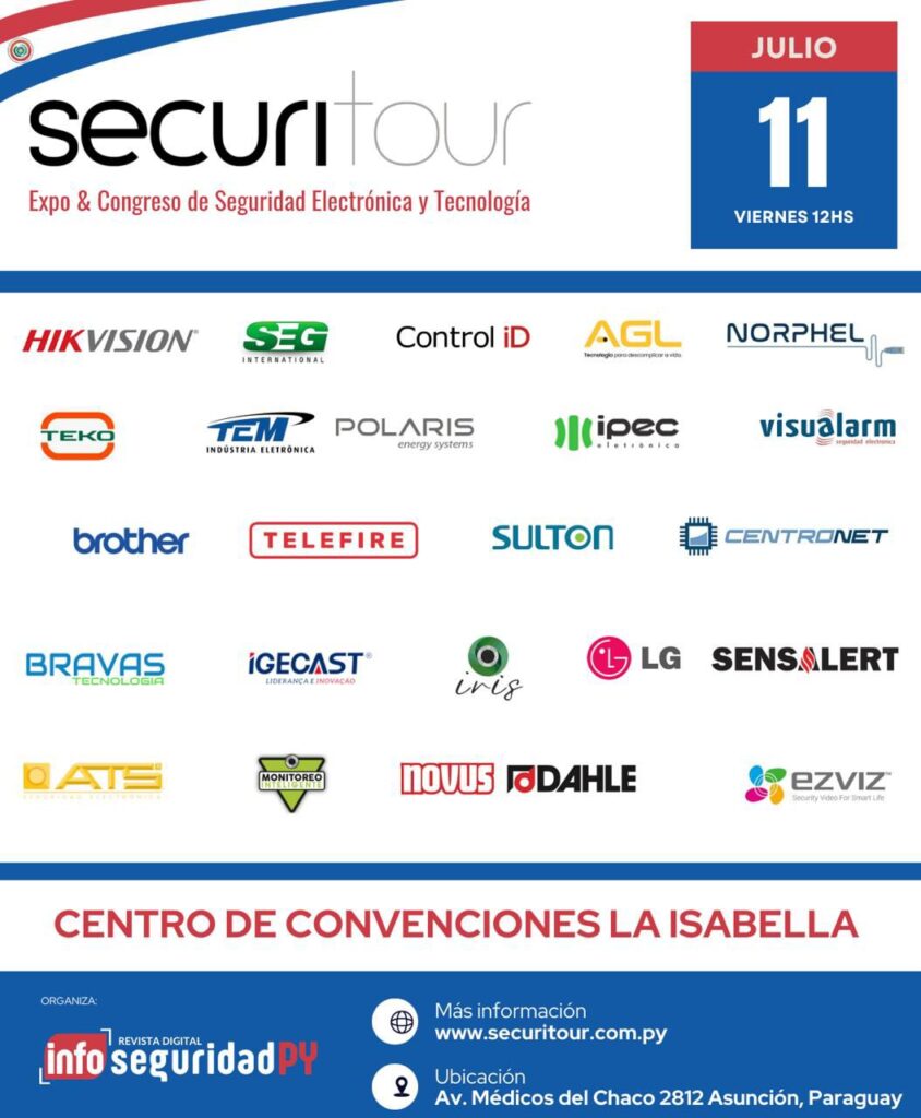 Securitour regresa a Asunción este viernes 11 de julio de 2025 con una edición muy especial: será la décima vez que el evento se realiza en Paraguay. Consolidado como la expo más importante del país en seguridad electrónica, automatización y tecnología aplicada, Securitour se ha transformado en el punto de encuentro clave para integradores, instaladores, distribuidores, fabricantes, empresas de monitoreo, organismos públicos y compradores institucionales.